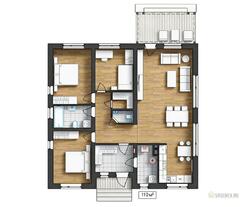 Гостиная-кухня-столовая / 3 спальни / 2 СУ. Теплая площадь дома: 115/25,3