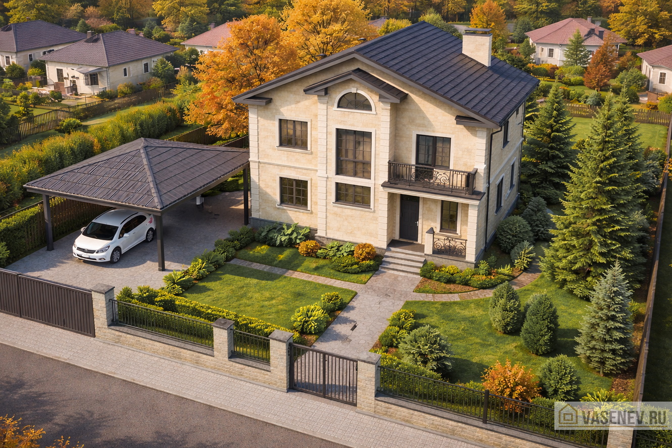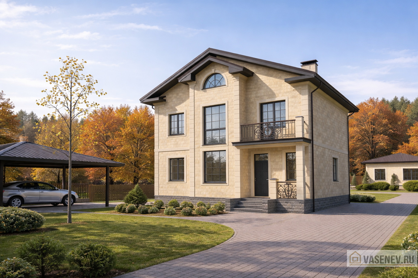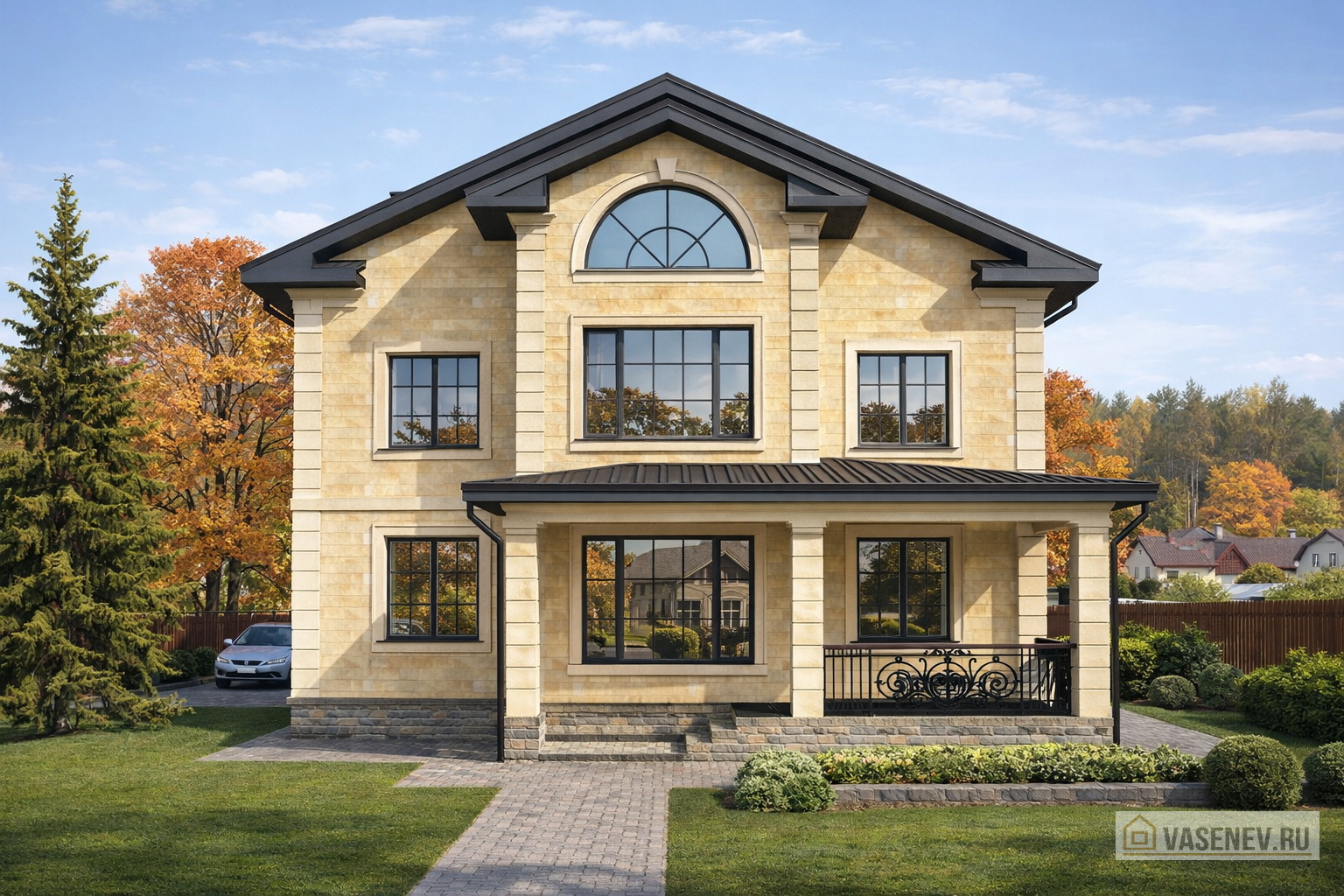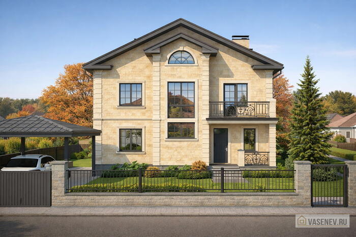 от 250-350 кв.м, Дом в стиле Неоклассика, Дом под натуральный камень